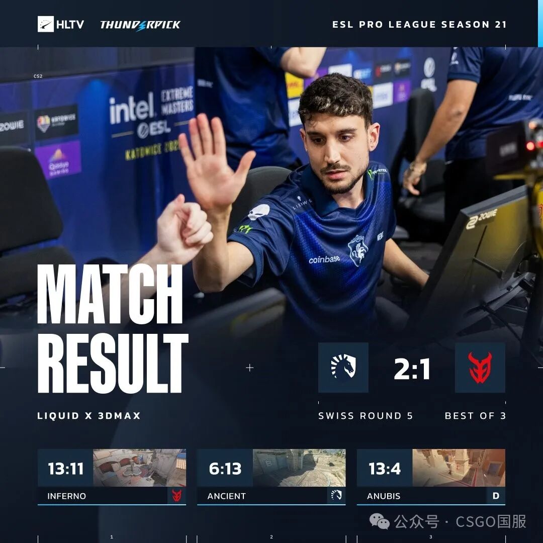 2-2组:Liquid 2-1淘汰3DMAX,以3胜2负晋级淘汰赛!